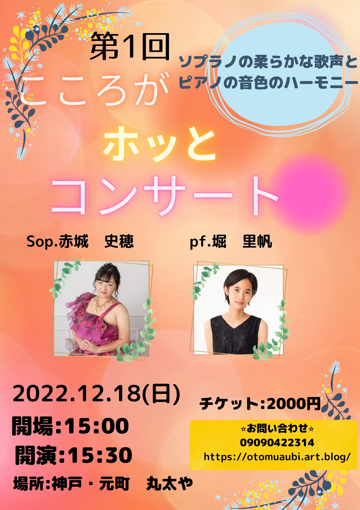 第1回こころがホッとコンサートがいよいよ明後日に近づいて来ました☺️